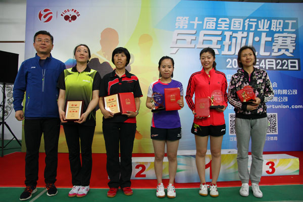经过激烈的争夺,金融体协、石油体协和电力体协代表队分别占据了混合团体三甲;来自金融体协的孔令昭、建筑体协的齐家栋和石油体协的袁磊分别荣获男子单打冠、亚、季军;来自金融体协的周昕彤、石化体协的郑洋洋和前卫体协的石胜男,则分别夺得了女子单打冠、亚、季军。
